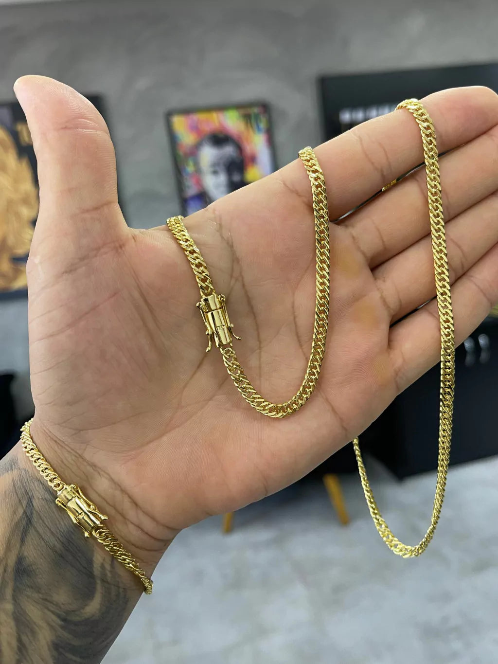 Kit Corrente + Pulseira Grumet Dupla 5mm Marcação 750