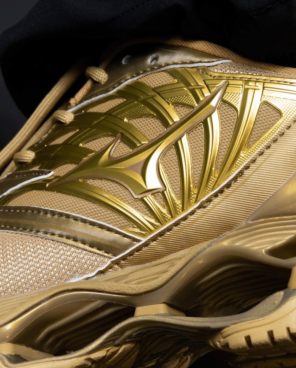 A clássica silhueta do Prophecy da Mizuno em uma collab exclusiva com a marca Shinzo. Esta colaboração é uma homenagem aos Jogos Olímpicos de 2024, sediados em Paris. O conceito por trás do produto é o Ouro parecer que o produto foi imergido em um tonel do mineral. Os materias escolhidos são refletivos, imitando o brilho da medalha. Shinzo é uma boutique de sneakers parisiense referência em streetwear